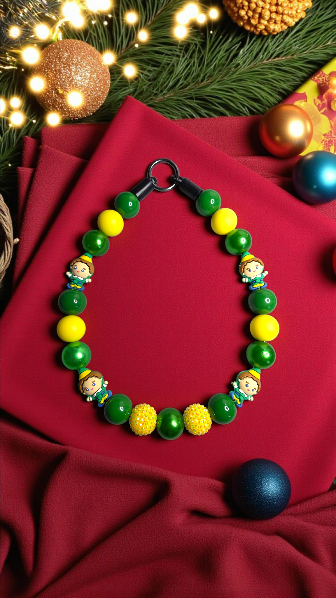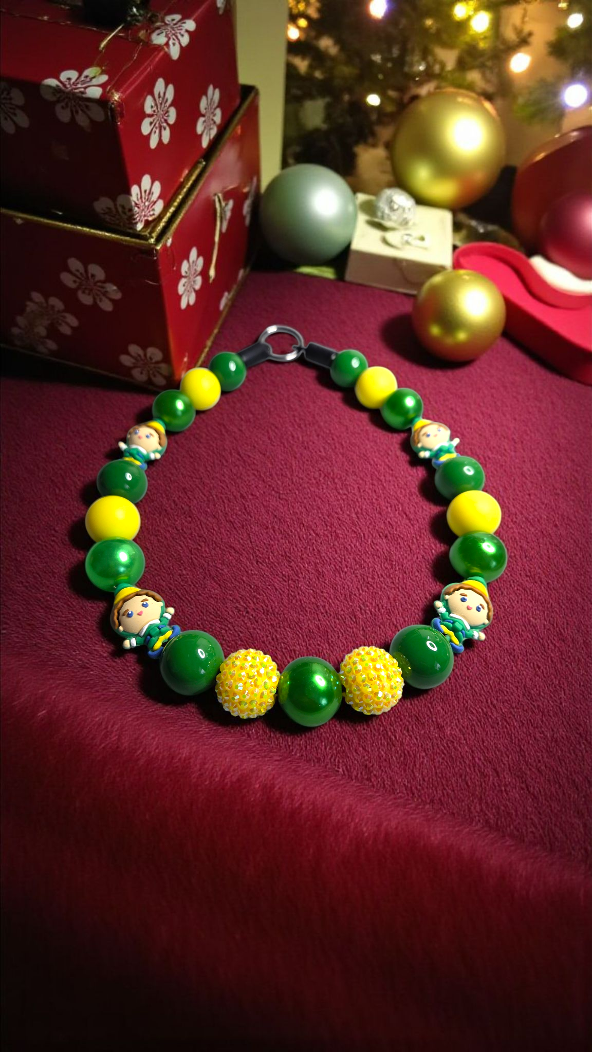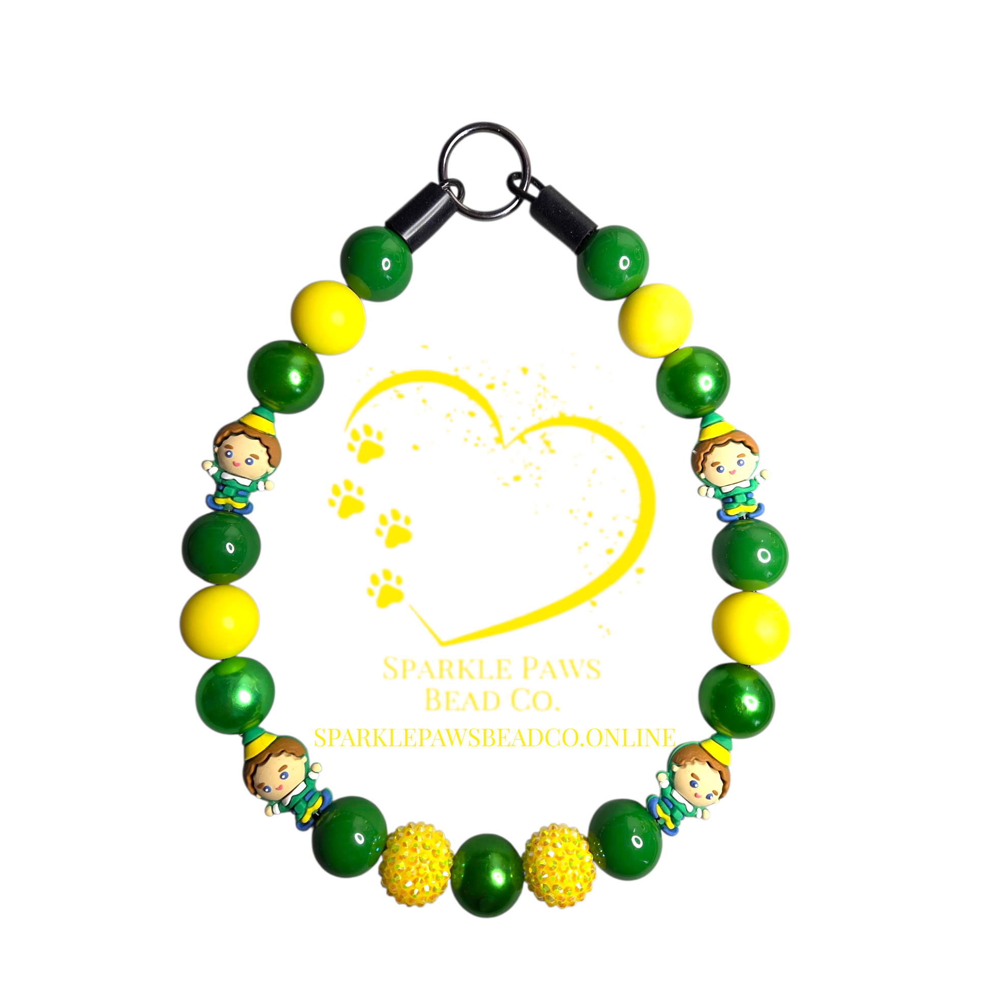 Featuring bold green and yellow beads with adorable elf charms, this collar is festive fun wrapped in sparkle — the ultimate accessory for your Christmas-loving pup!