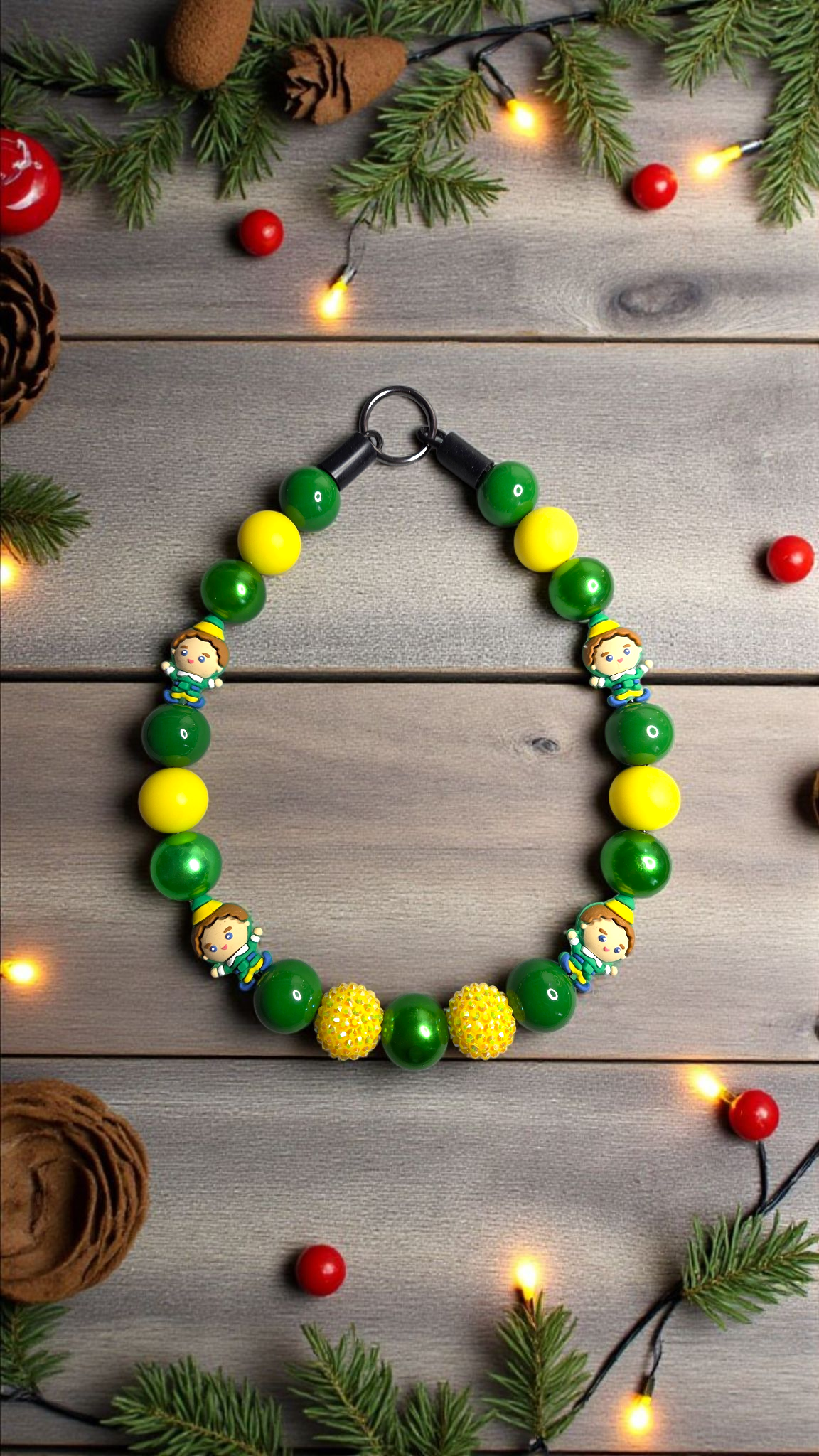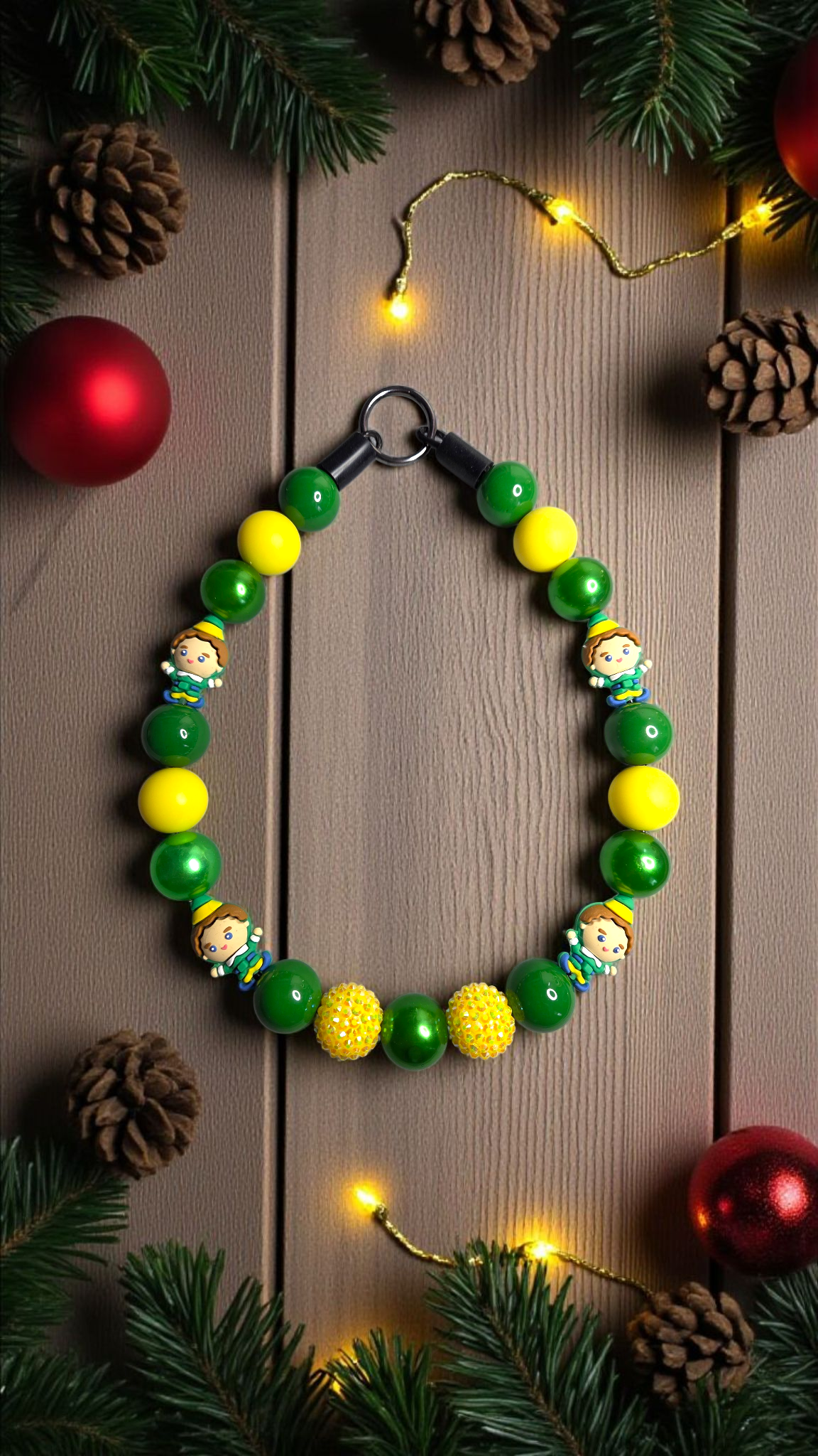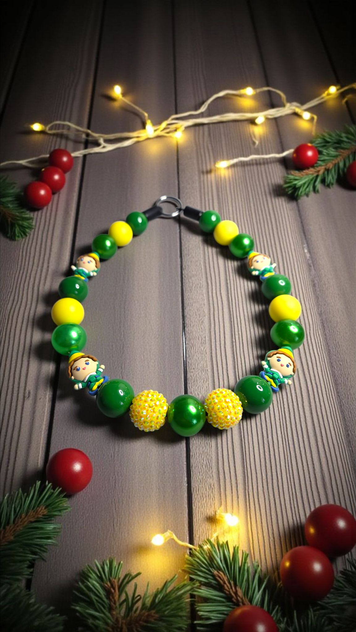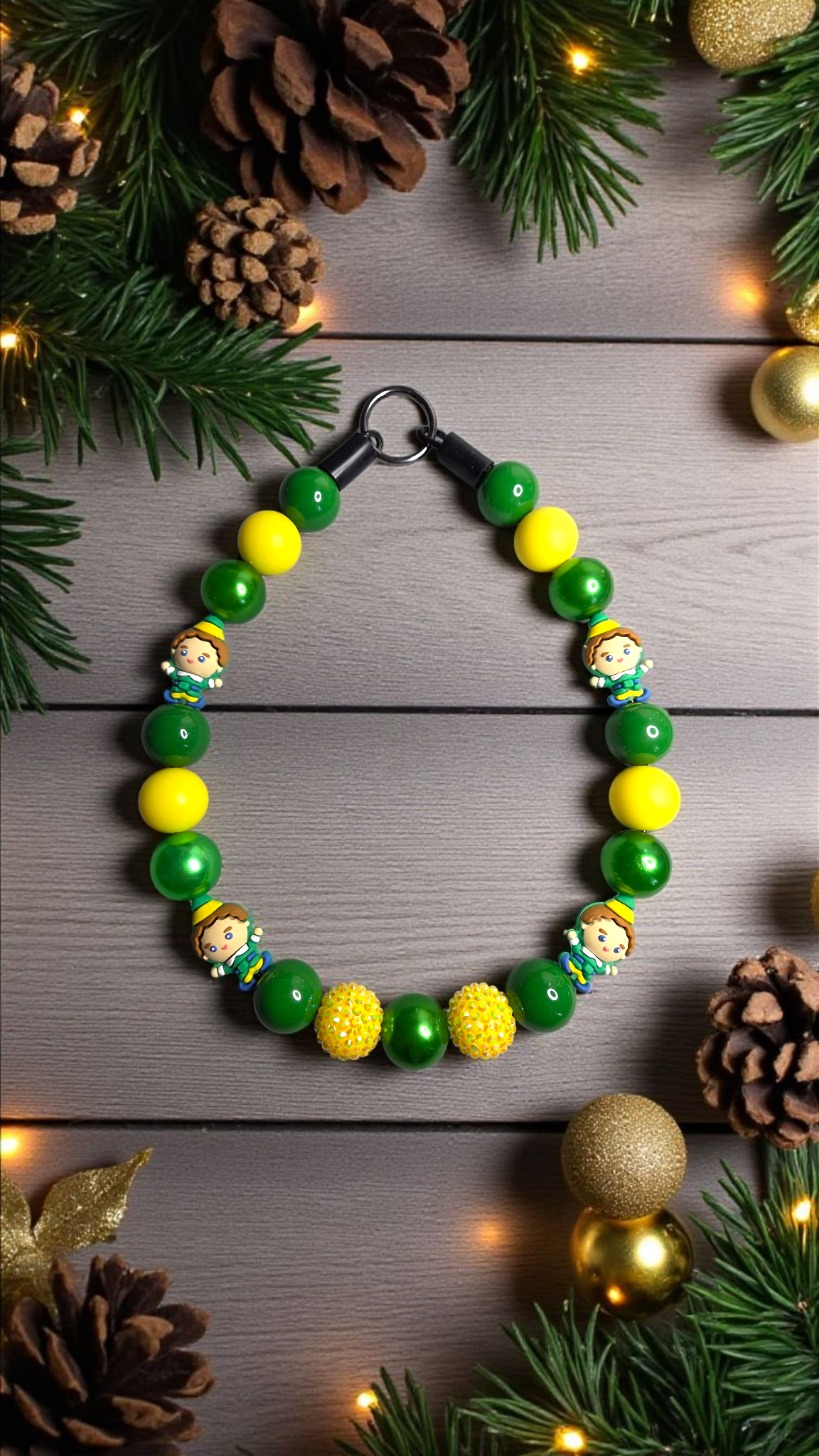 Featuring bold green and yellow beads with adorable elf charms, this collar is festive fun wrapped in sparkle — the ultimate accessory for your Christmas-loving pup!