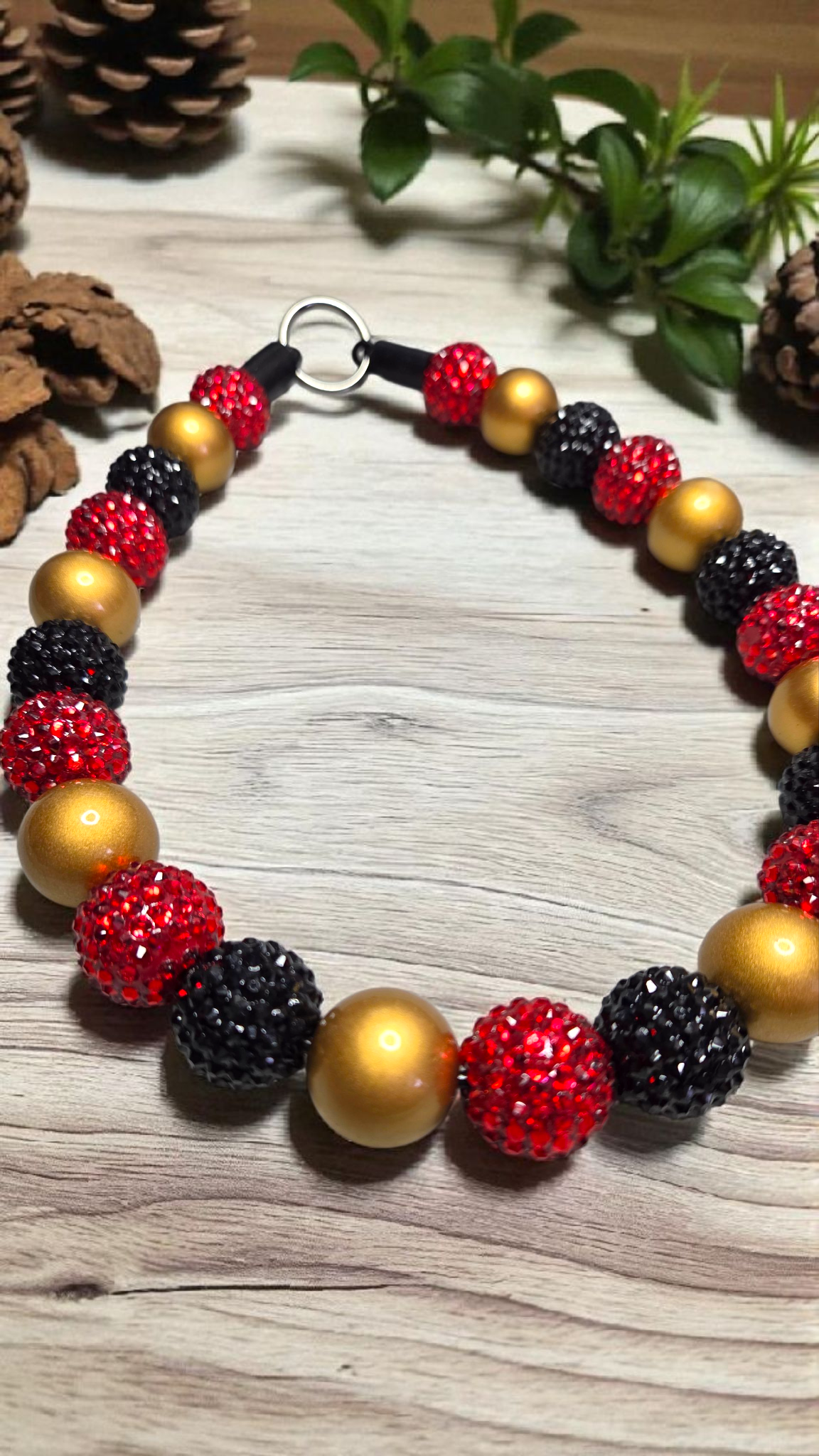 Dazzling red, gold, and black bead combo for holiday glam ✨