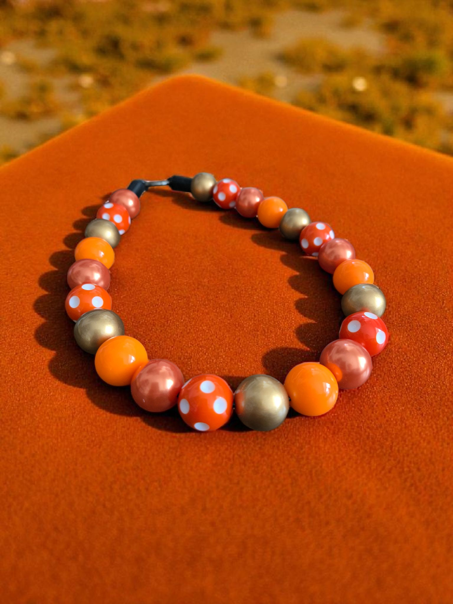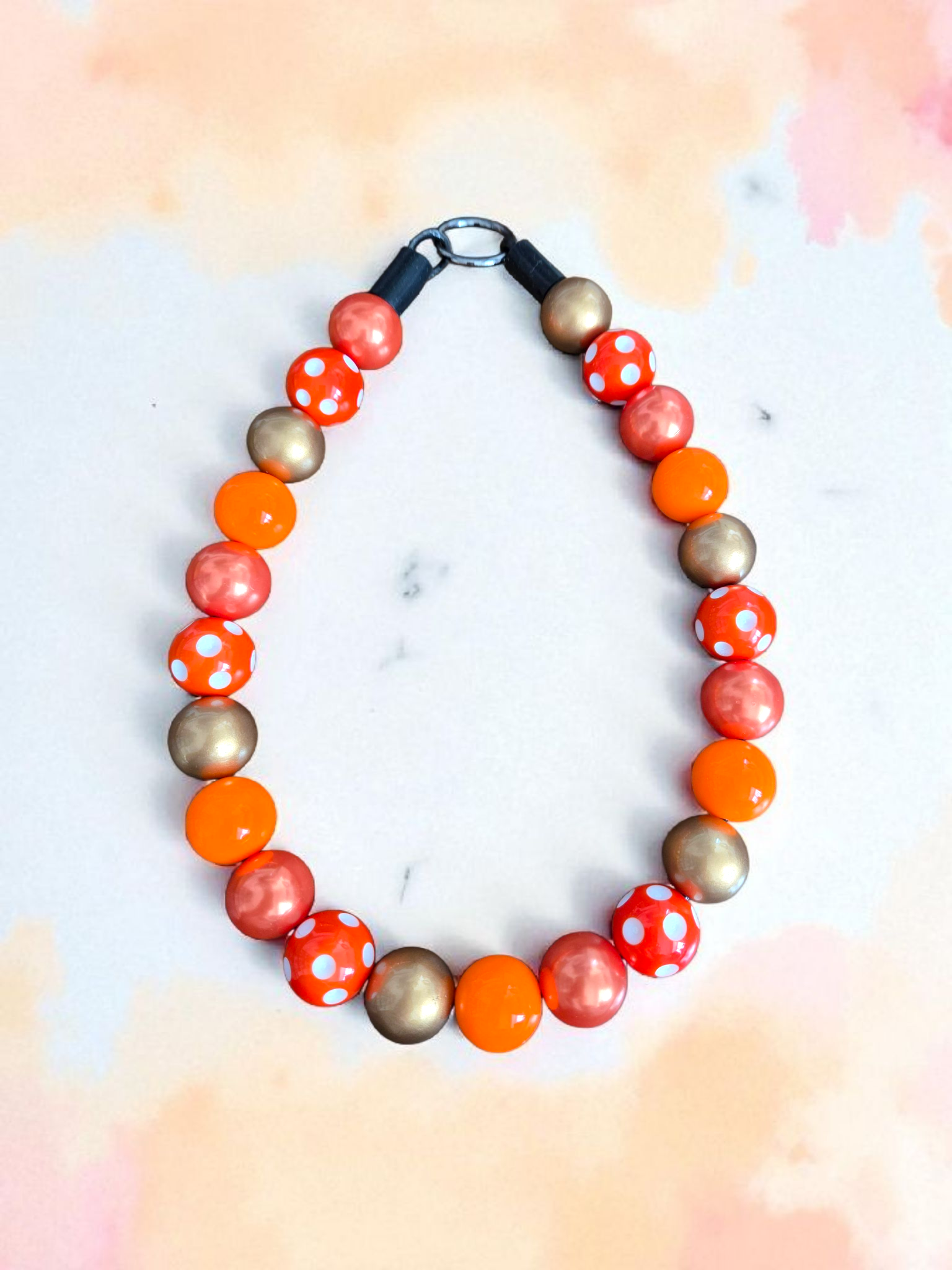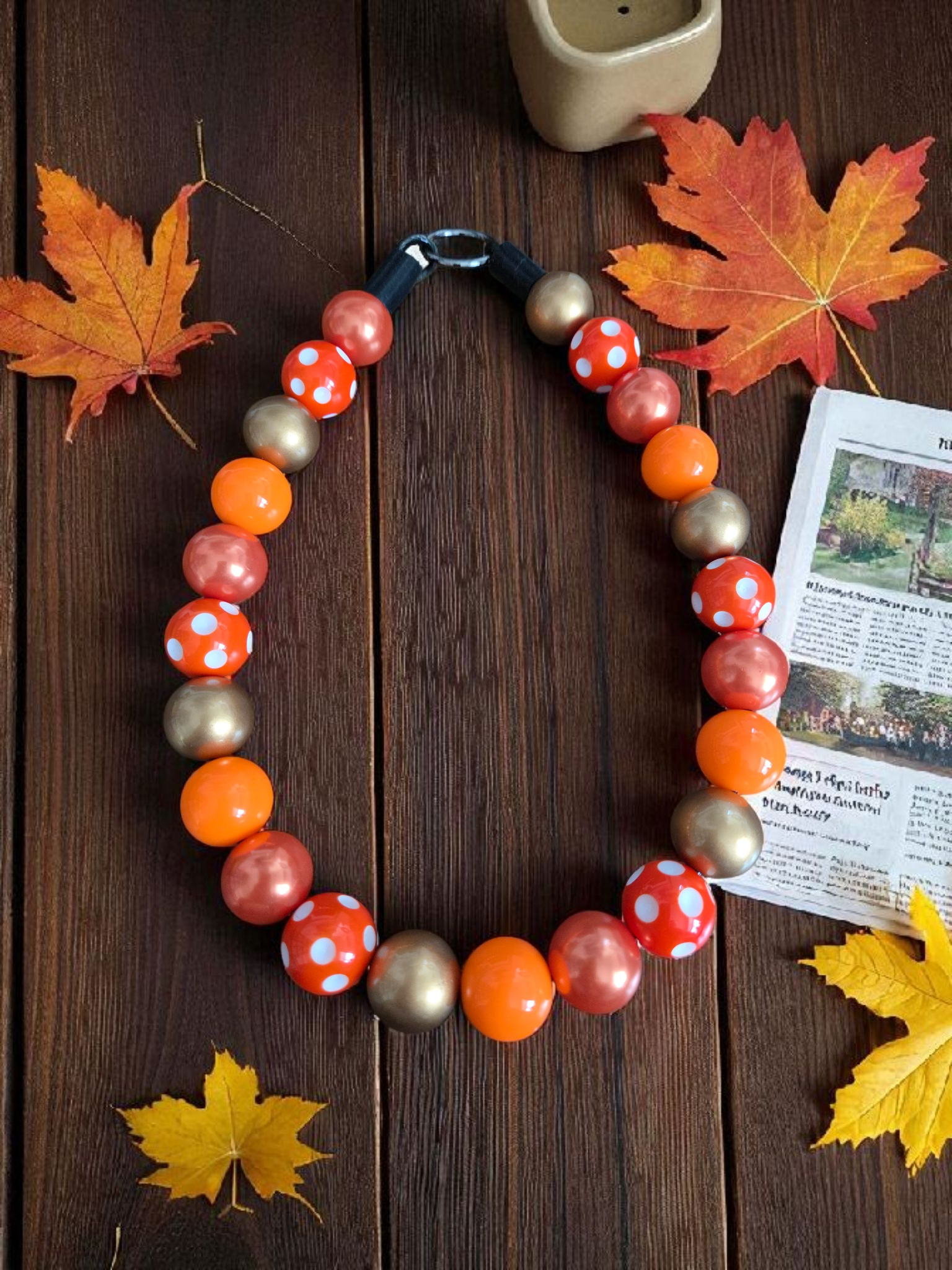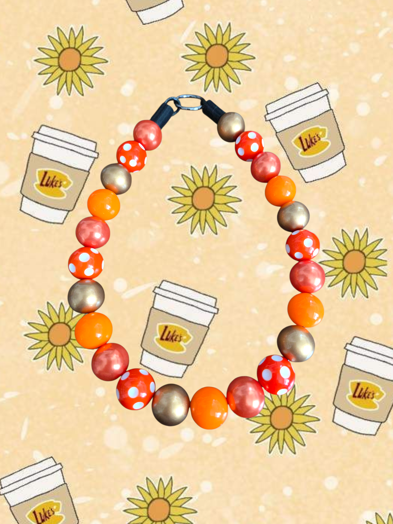 Channel cozy Stars Hollow vibes with Lorelai, a beaded dog collar that’s as charming as a crisp autumn morning and as bold as a double-shot espresso. With warm orange, golden tones, and playful polka dots, this collar captures the spirit of fall and the wit of the Gilmore Girls’ leading lady.