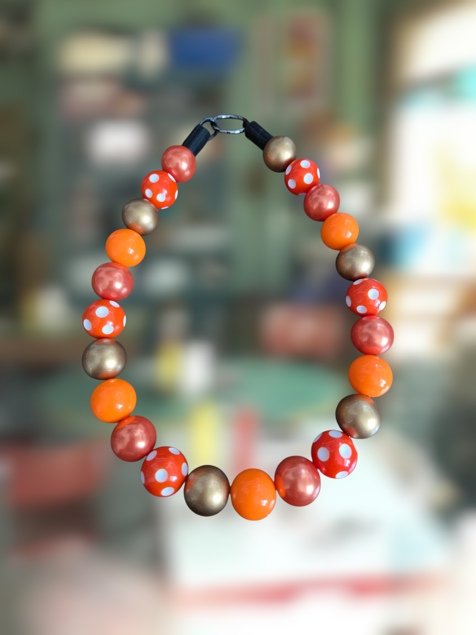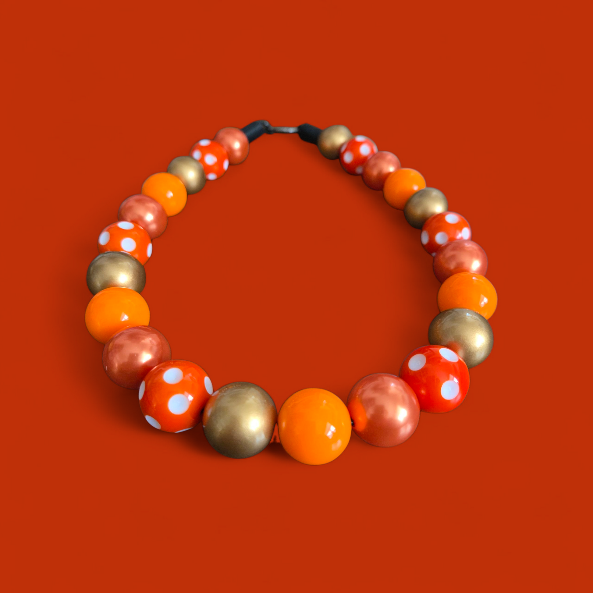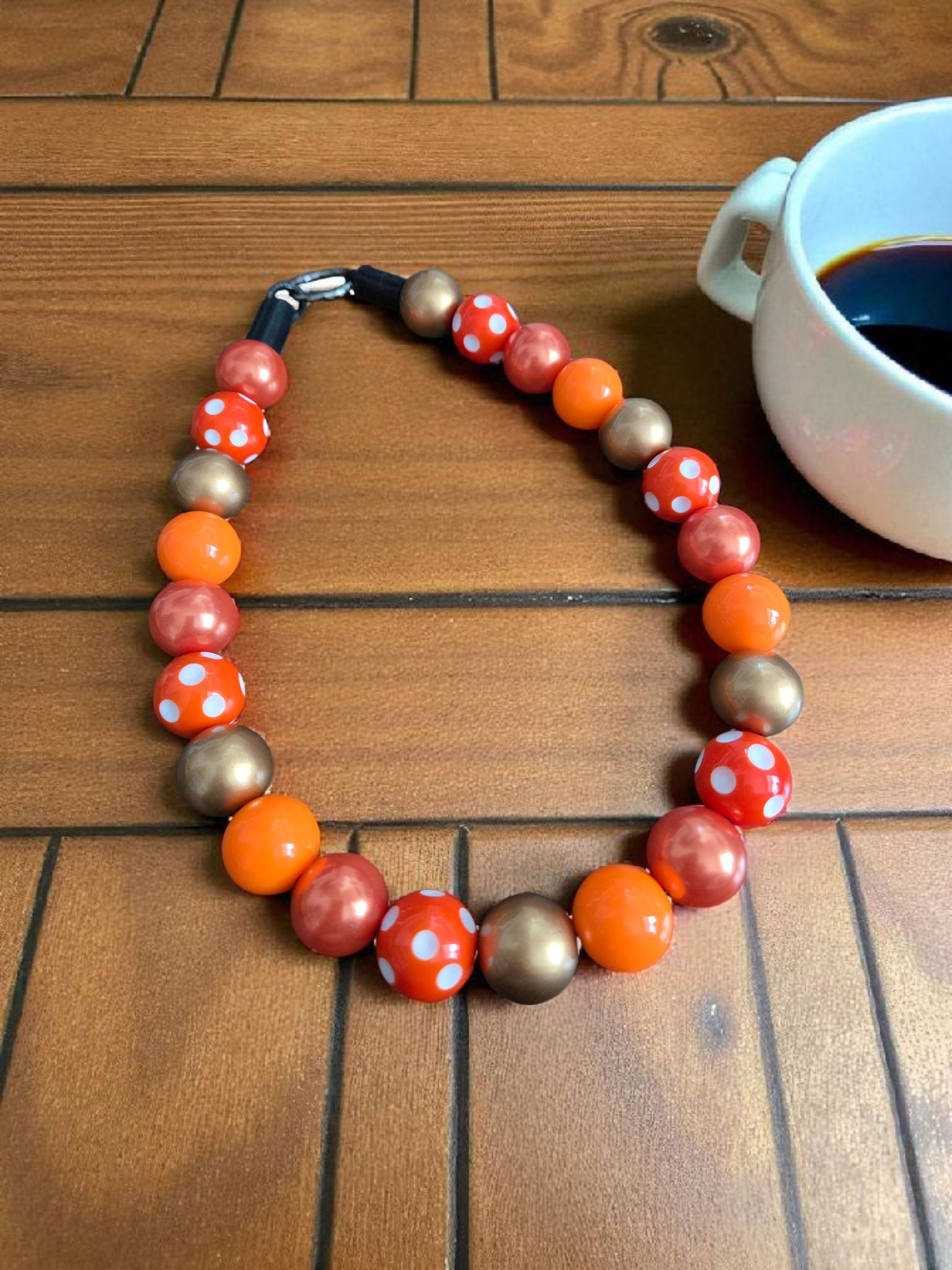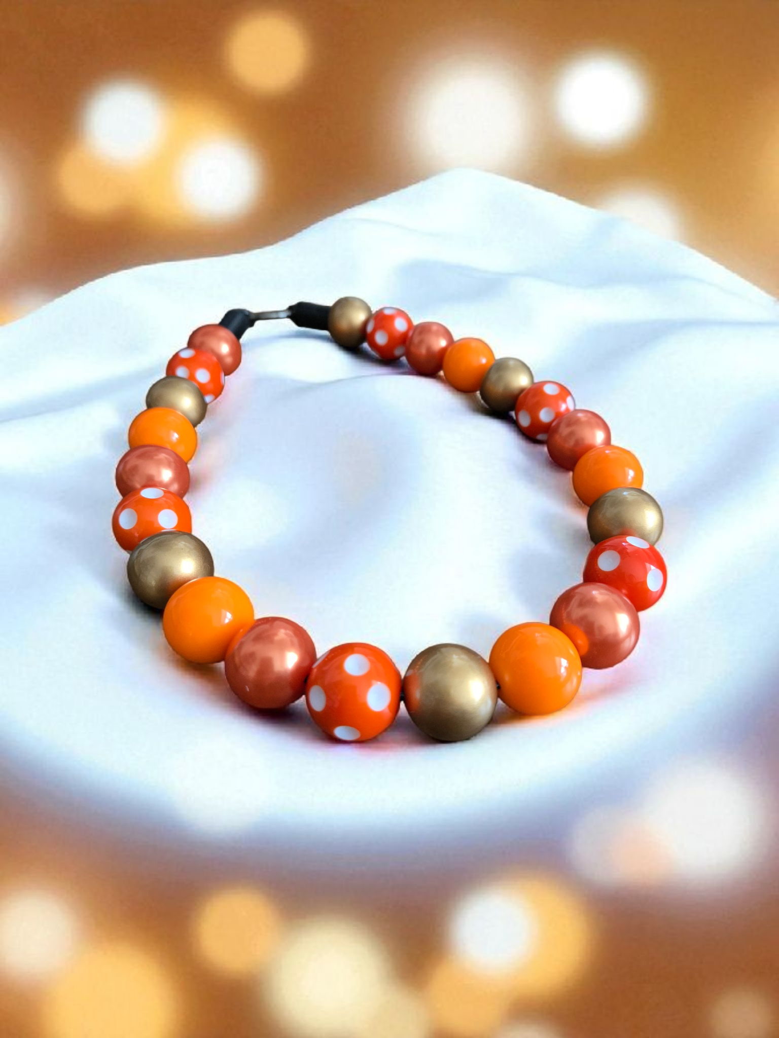 Channel cozy Stars Hollow vibes with Lorelai, a beaded dog collar that’s as charming as a crisp autumn morning and as bold as a double-shot espresso. With warm orange, golden tones, and playful polka dots, this collar captures the spirit of fall and the wit of the Gilmore Girls’ leading lady.